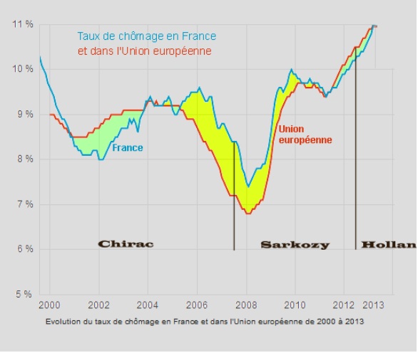 - À fin 2013, sous le gouvernement Hollande, la situation du chômage s’est dégradée par rapport au reste de l’Europe.